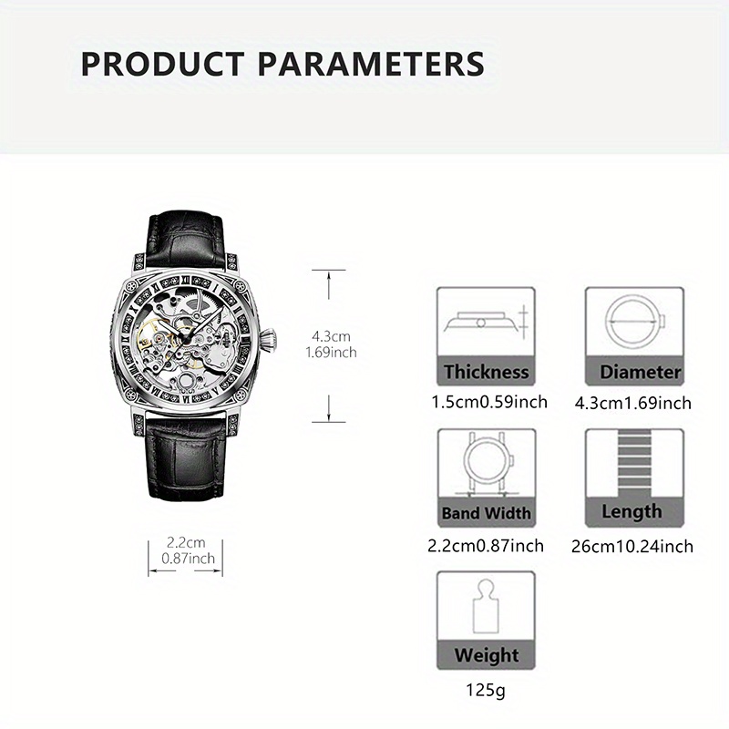 1pc Men's Silvery-Black Belt Retro Style Handsome Personality Luminous Engraved Automatic Mechanical Watch