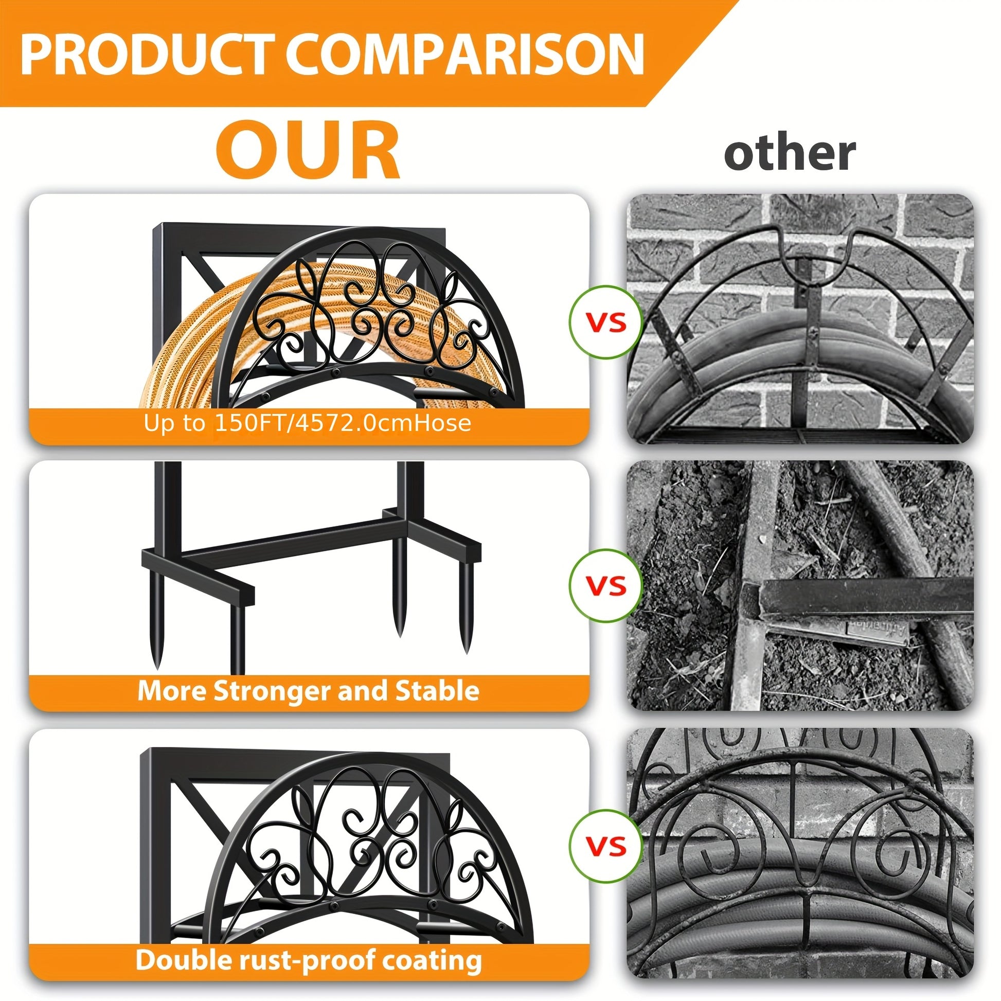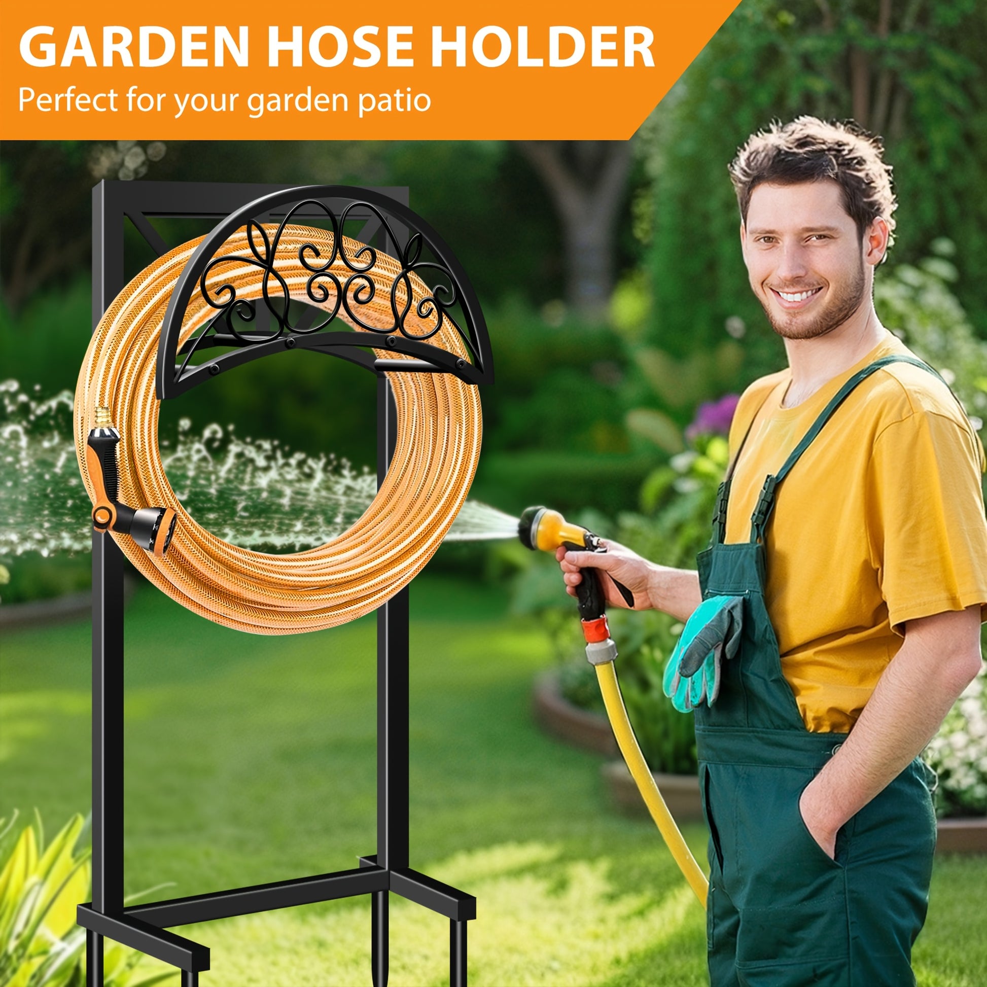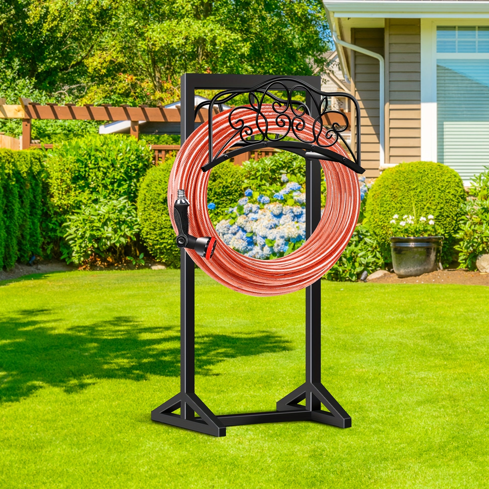 1pc Metal Garden Hose Holder, Outdoor Water Hose Holder with Hose Reel, Easy to Assemble, Detachable Design for Convenient Storage, for Outdoor, Garden, Patio Lawn, Black