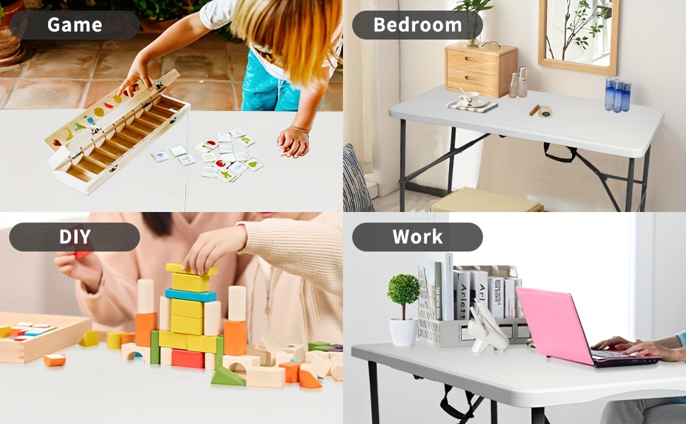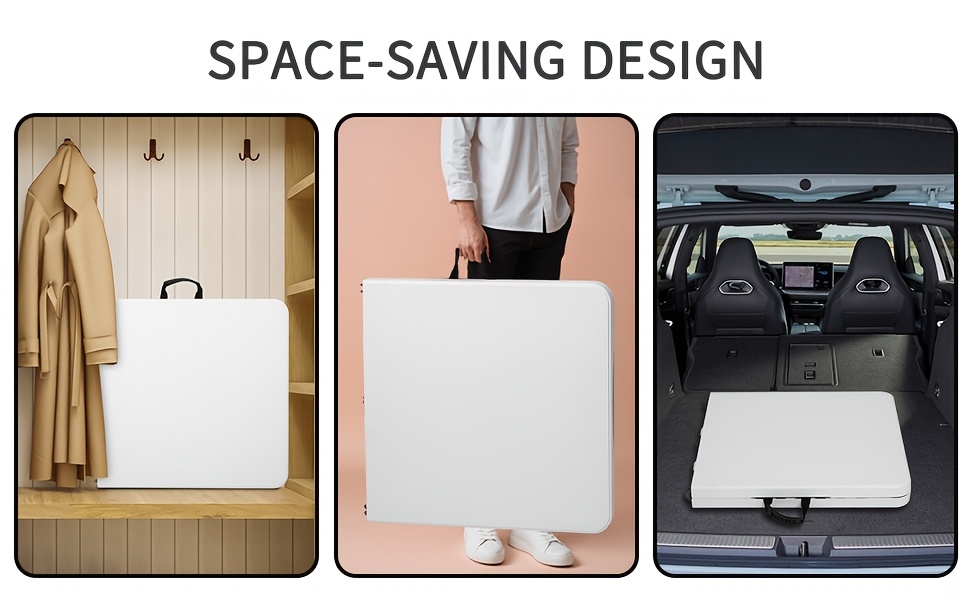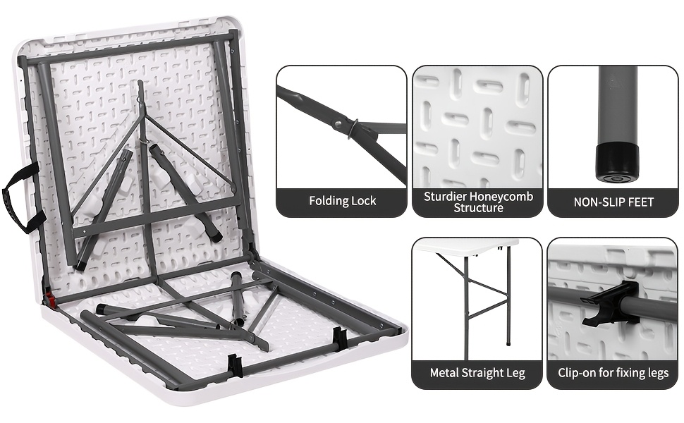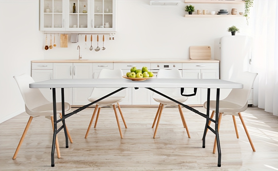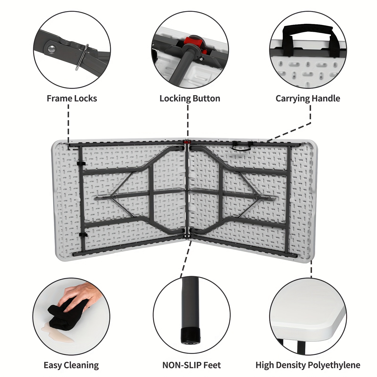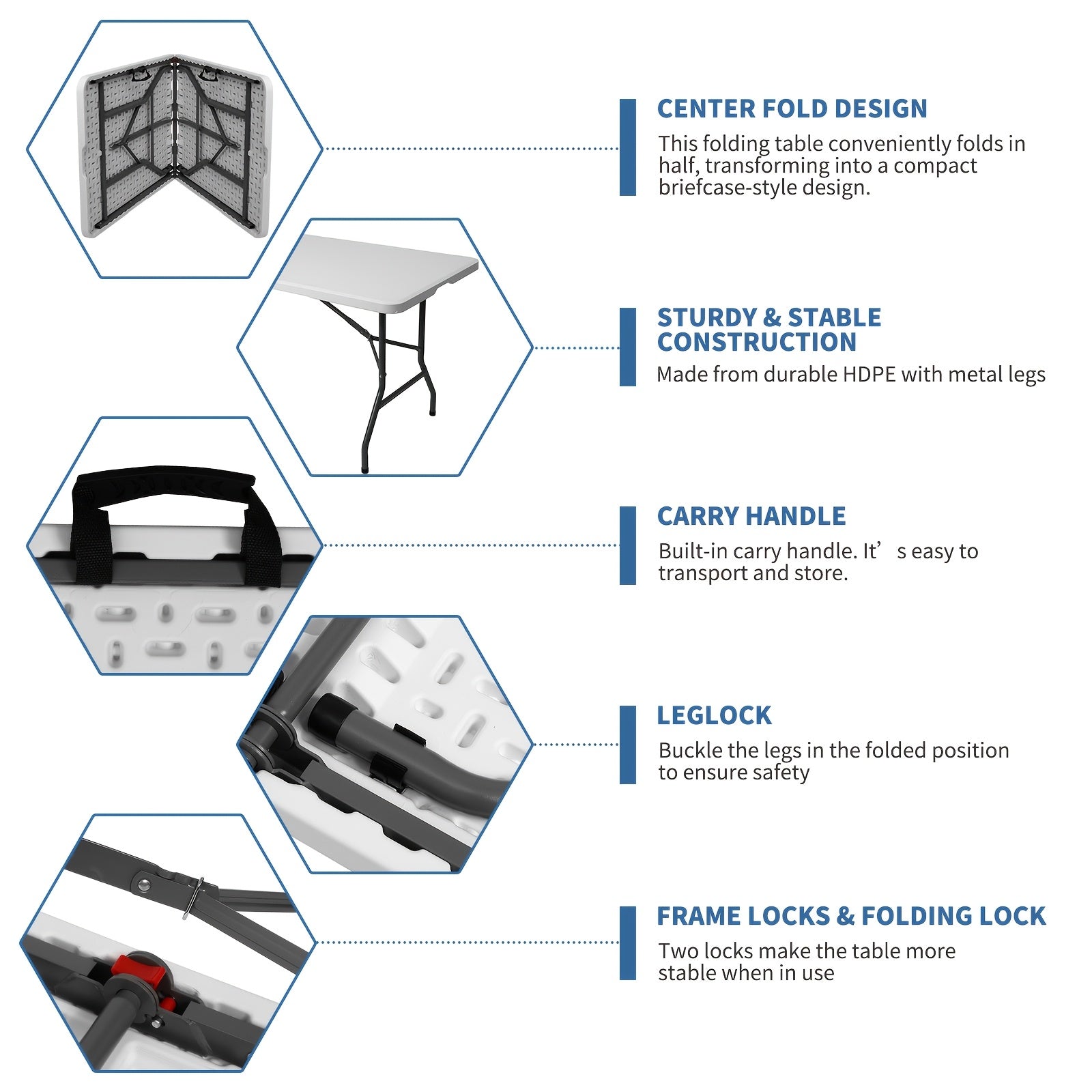 4ft/6ft Plastic folding Table, Portable Dining Table Indoor Outdoor with Carrying Handle, Locks - White
