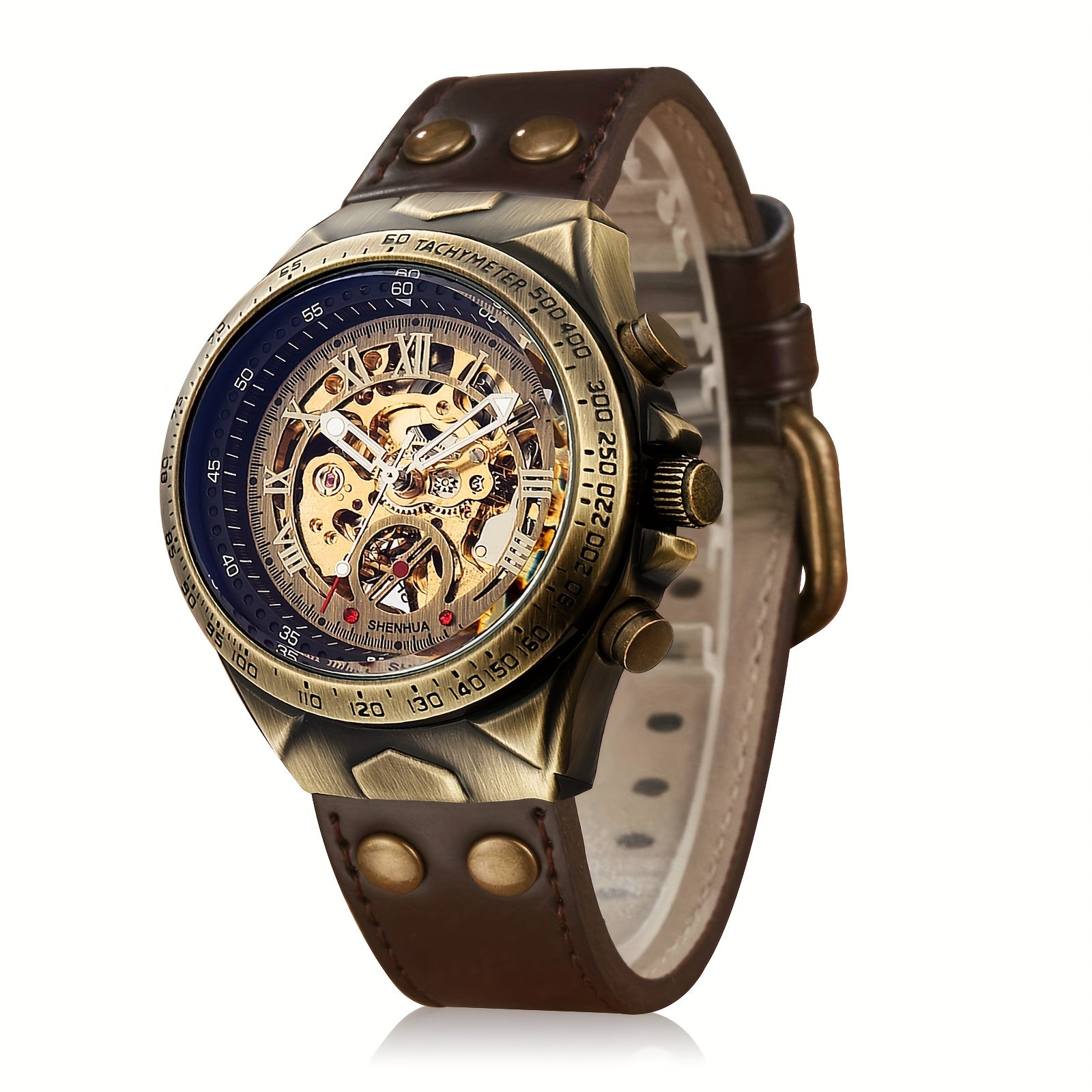 Automatic Mechanical Wristwatch for Men, Luxury Classic Skeleton Dial Watch, Retro Design for Casual Fashion, Ideal Gift for Labor Day/Christmas/Thanksgiving/Birthday