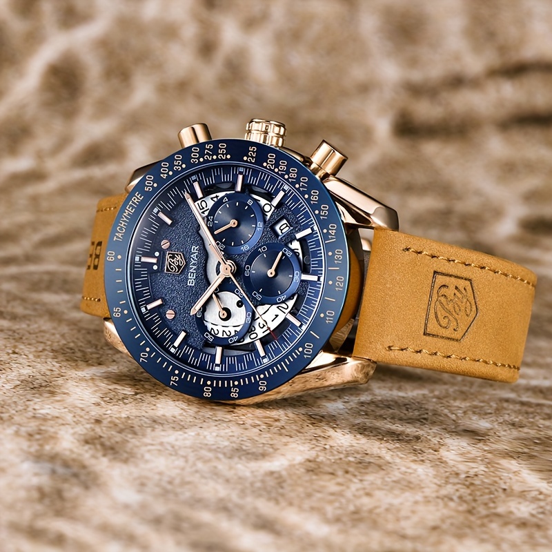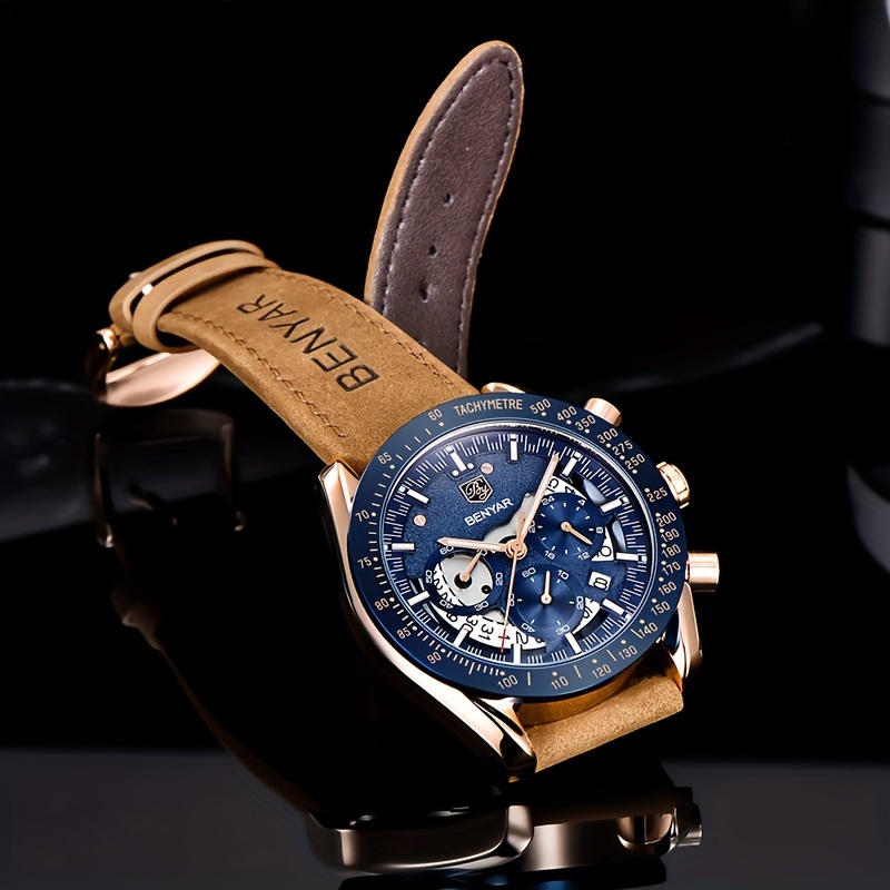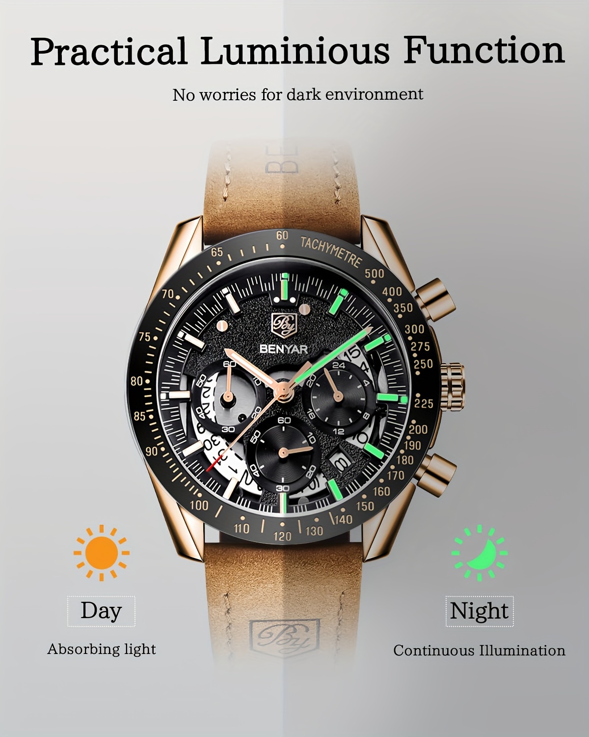 BENYAR Watches For Men Analog Quartz Chronograph Luminous Big Face Mens Watches Business Work Sport Casual Fashion Designer Dress Men'S Wrist Watches Elegant Gift For Men