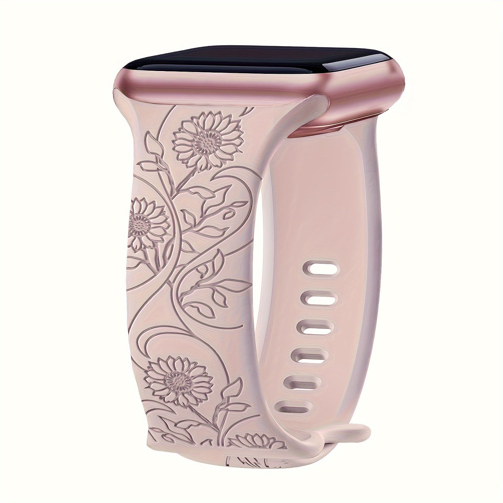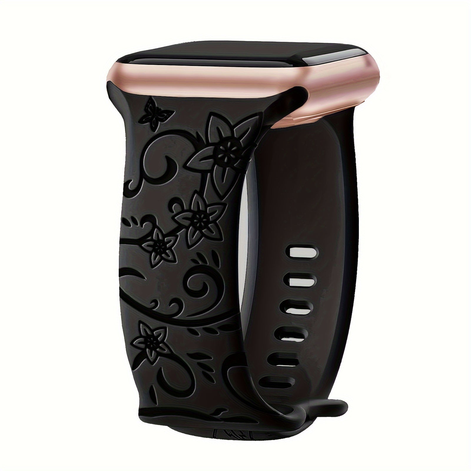 [Durable Silicone Band] Apple Watch Floral Engraved Silicone Band | Durable & Stylish Replacement Strap, Compatible with Series 10/9/7/6/8/5/4/Ultra/2, 38mm-49mm, Ideal for Christmas & Easter Gifts