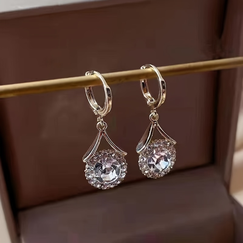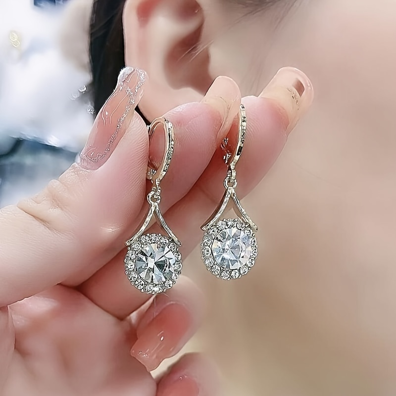 Elegant Aurora French-Inspired Cubic Zirconia Drop Earrings - Dazzling Luxurious Sparkle with Exquisite Design, Perfect for Weddings, Parties, and Special Occasions for Women