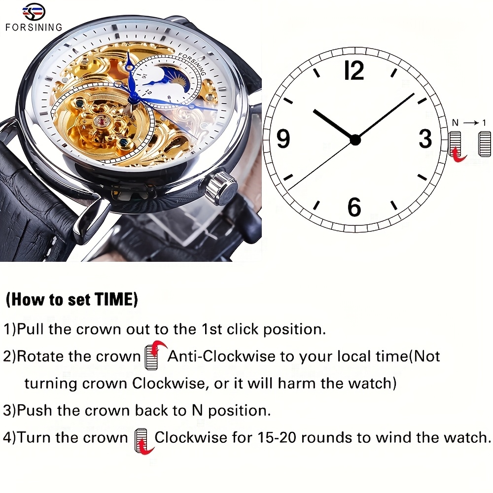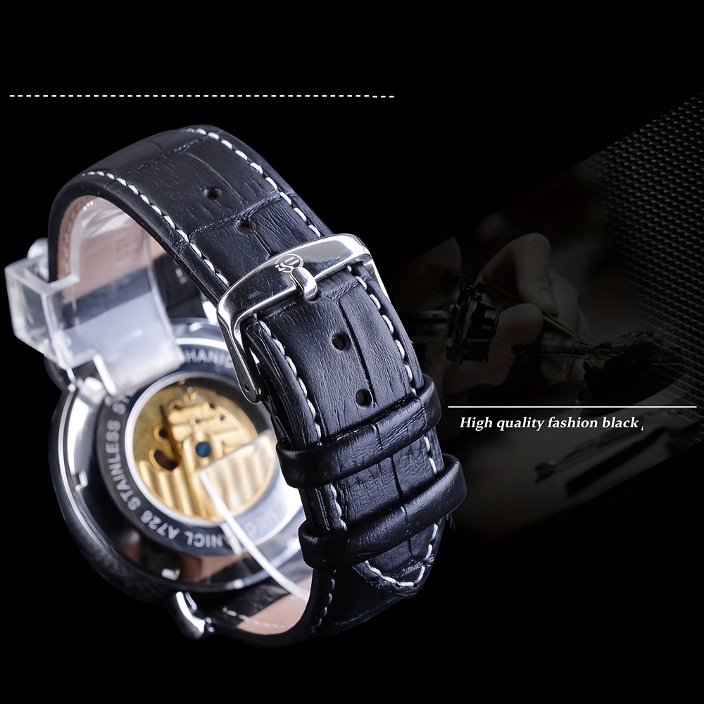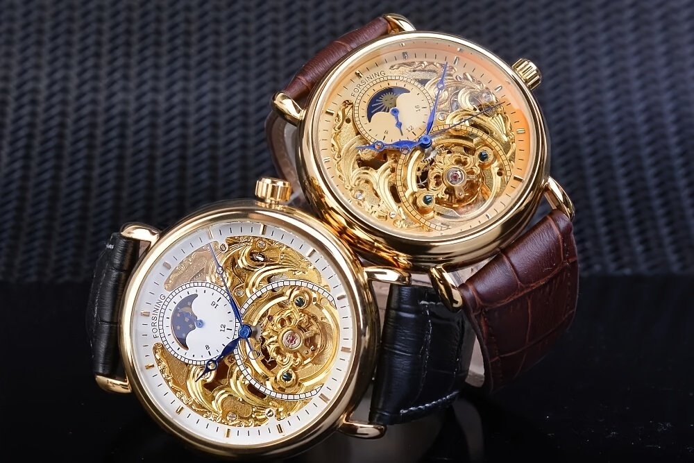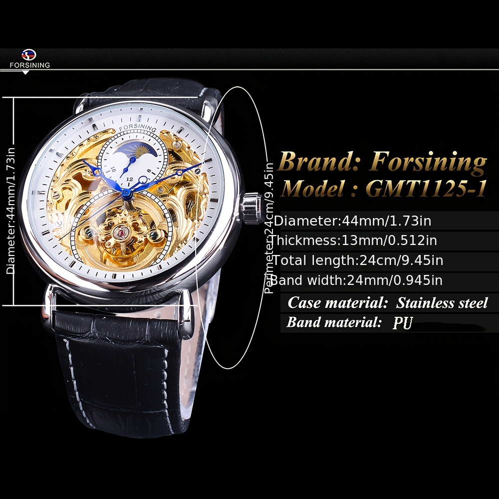 Forsining Vintage Royal Golden Men's Skeleton Watch - Tourbillon & Moon Dial, Blue Hands, Stainless Steel Case, Faux Leather Strap - Elegant Business Fashion Wristwatch, Mechanical Watches, Ideal Luxury Gifts, Casual