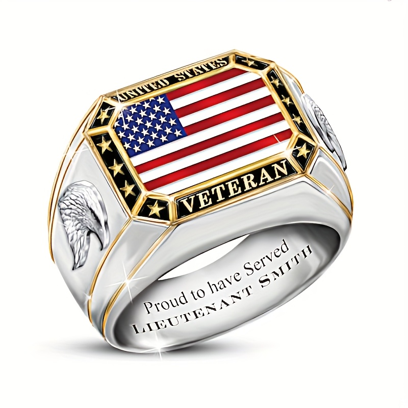 Men's Patriotic American Flag Ring Geometric Square Star & Stripe Design, Punk Hip Hop Rapper Jewelry, Independence Day Military Gift, Anniversary Band for Him