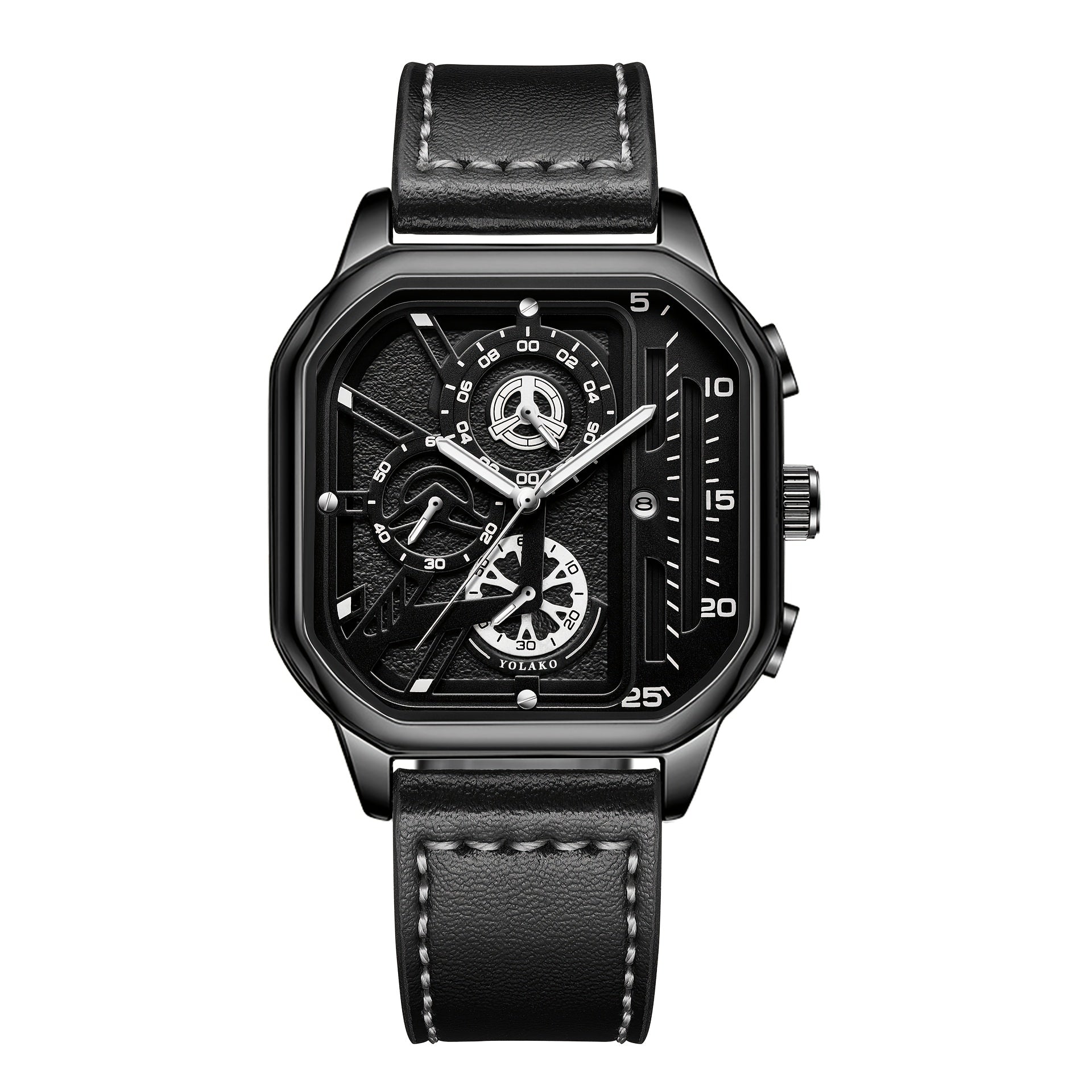 Men's Vintage Sports Quartz Watch with Large Dial, Date Calendar, Rose Golden Accents & Black Faux Leather Strap - Business Casual Wristwatch, Ideal Gift for Him, Everyday Luxury Watch, Durable Wristwatch