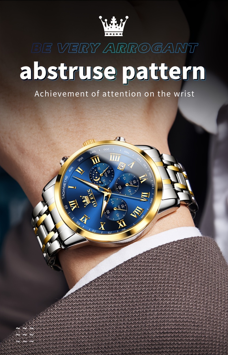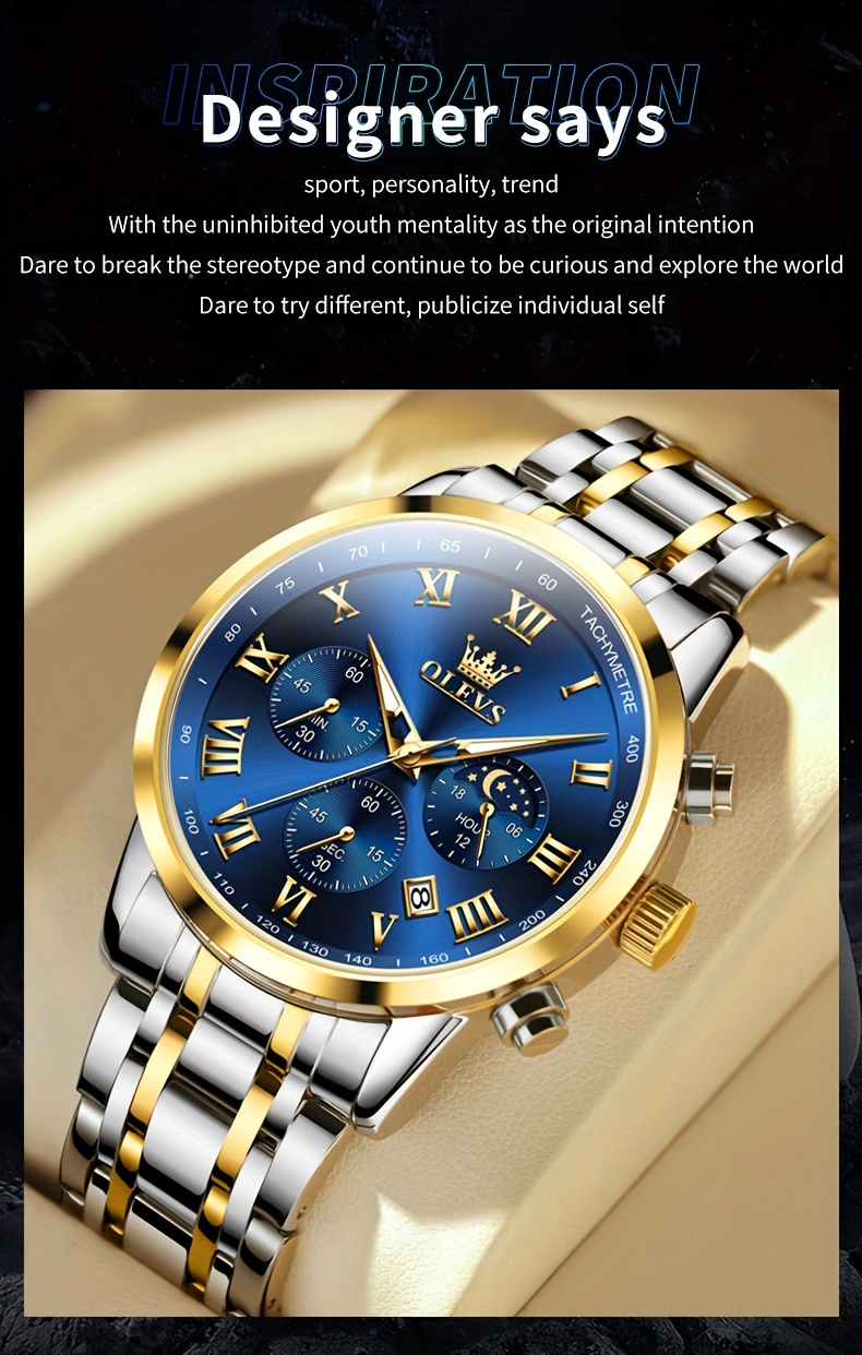 OLEVS Men Watch Stainless Steel Chronograph Roman Numerals Moon Phases Analog Quartz Luxury Dress Watch for Men
