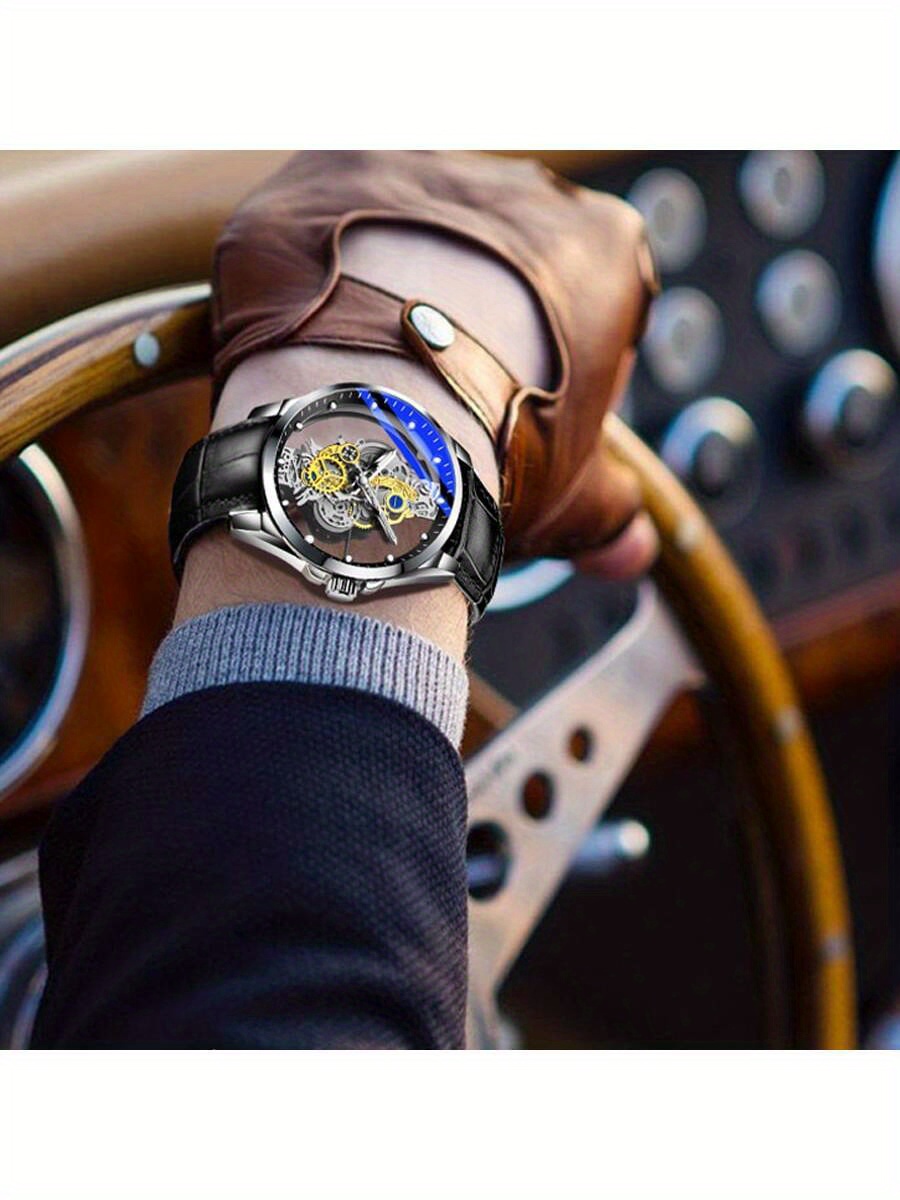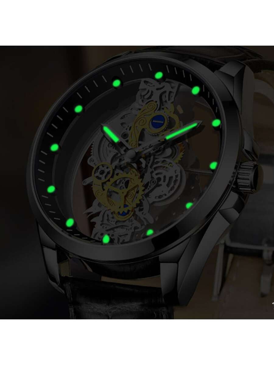 [Silvery Luminous Quartz Watch] Silvery Men's Luminous Quartz Watch - One Business Style Hollow Out See Through